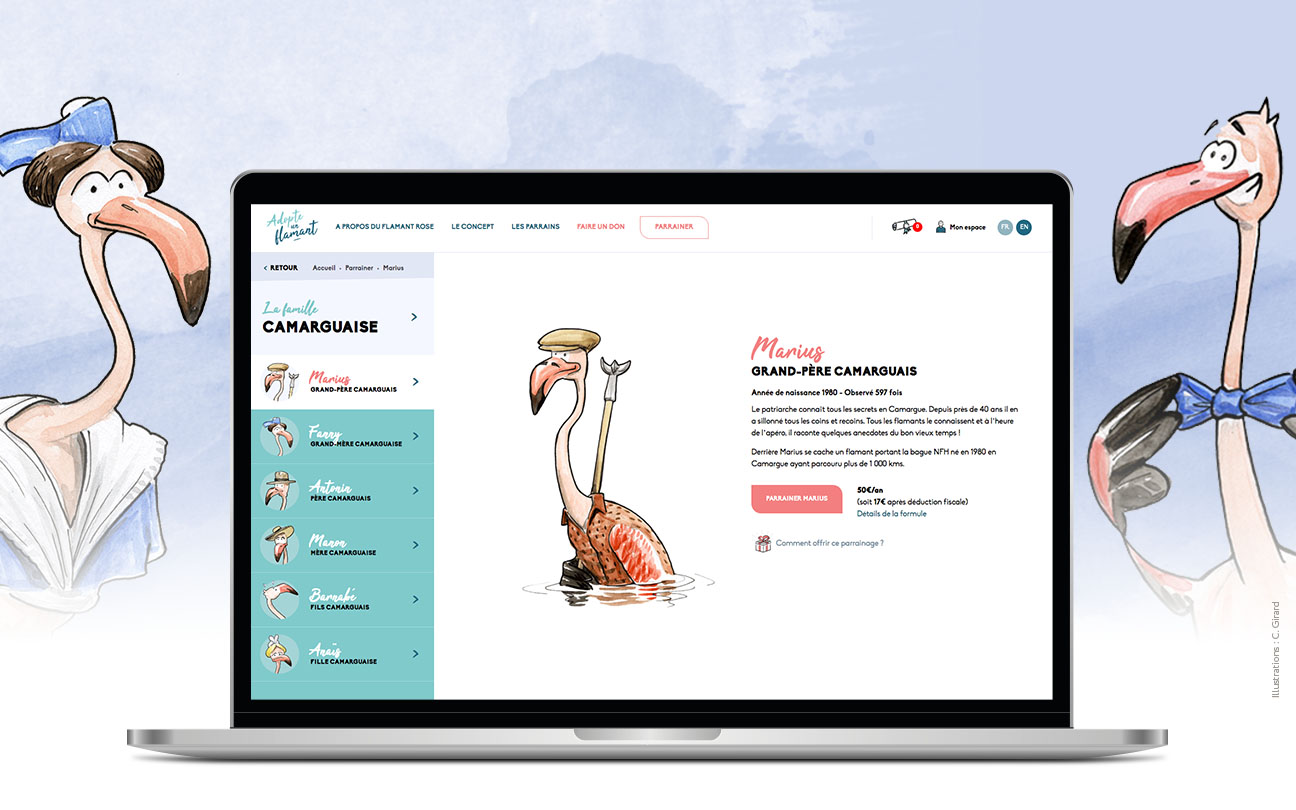 Plateforme numérique de parrainage de flamants roses